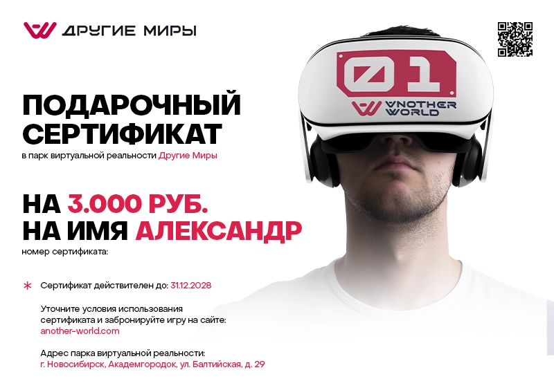 Сертификат можно получить самовывозом на нашей VR-арене.