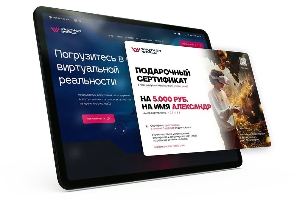 Пластиковый сертификат действует на нашем сайте и на нашей VR-арене. Для оплаты онлайн необходимо ввести номер подарочного сертификата в поле «промокод».